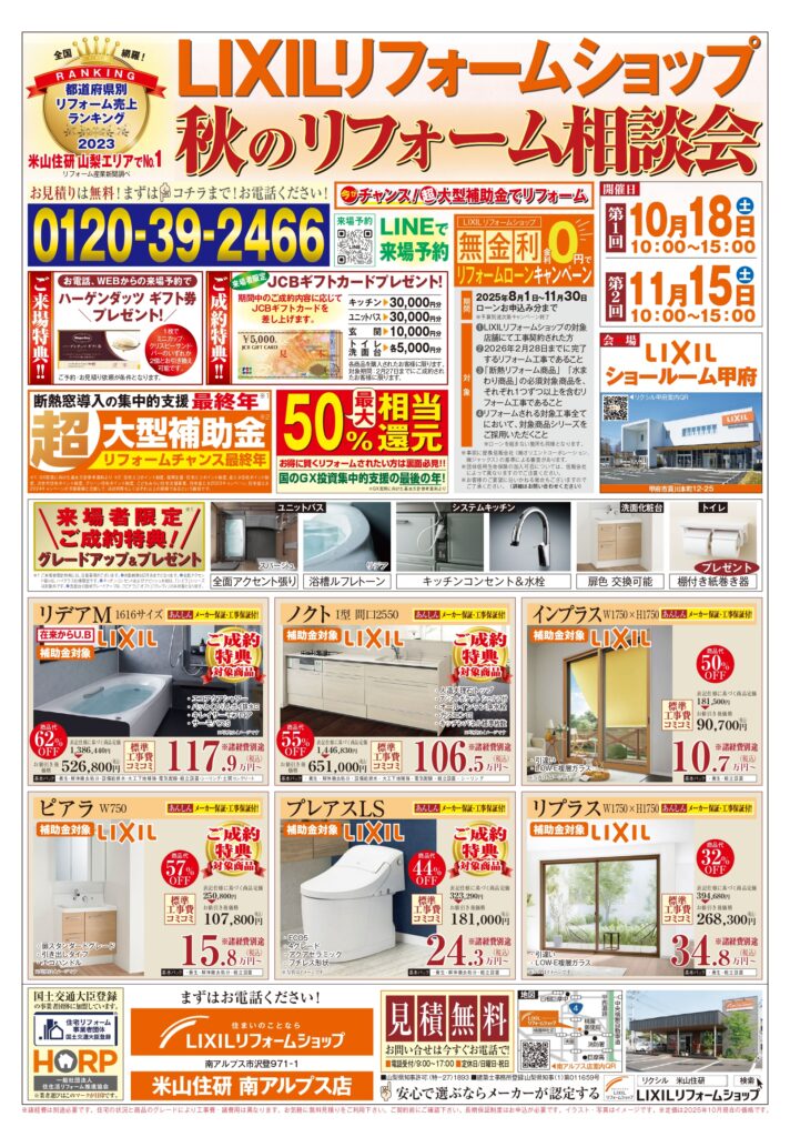 ■相談会内容:トイレ、キッチン、浴室、洗面化粧台、内窓(インプラス)、窓や玄関ドア等でお困りごとはございませんか?リフォームをお考えの方はこの2回のどちらかで商品を見に来ませんか(要ご予約)