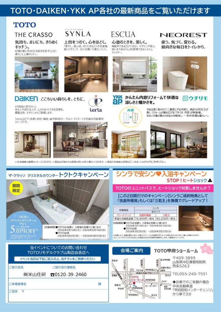 - TOTO甲府ショールーム(住所/中巨摩郡昭和町西条5263)