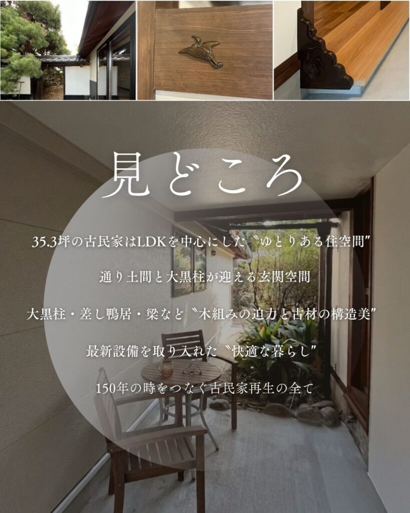 見ごたえのある…古材の構造美・広い土間・大黒柱や梁…など