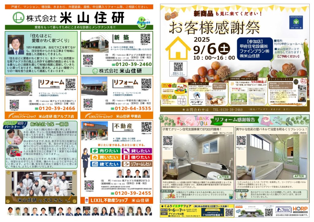 *8月号米山住研通信はこちら!