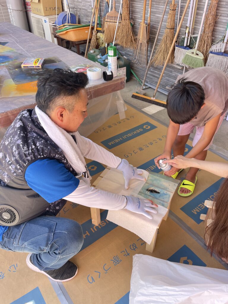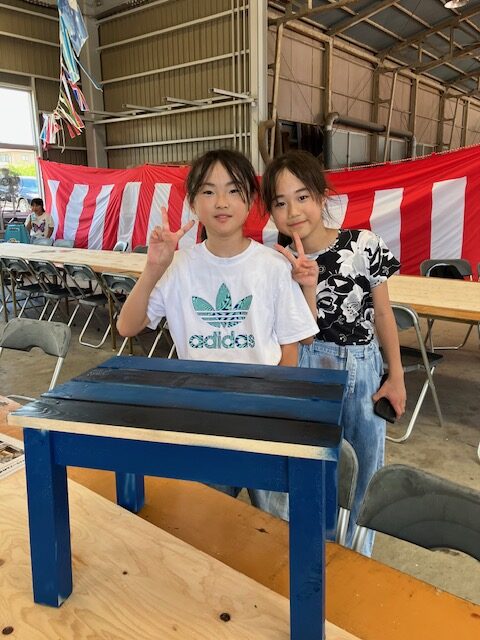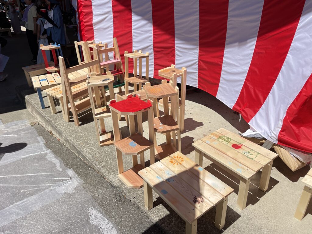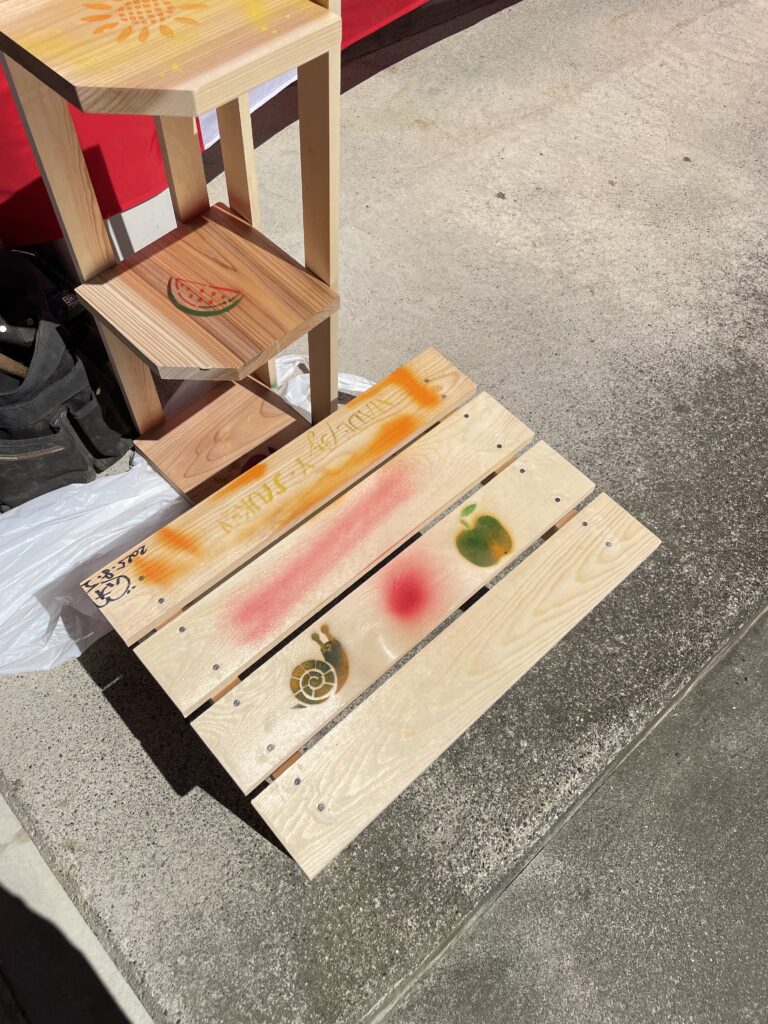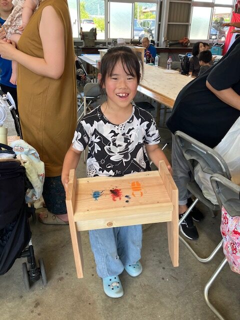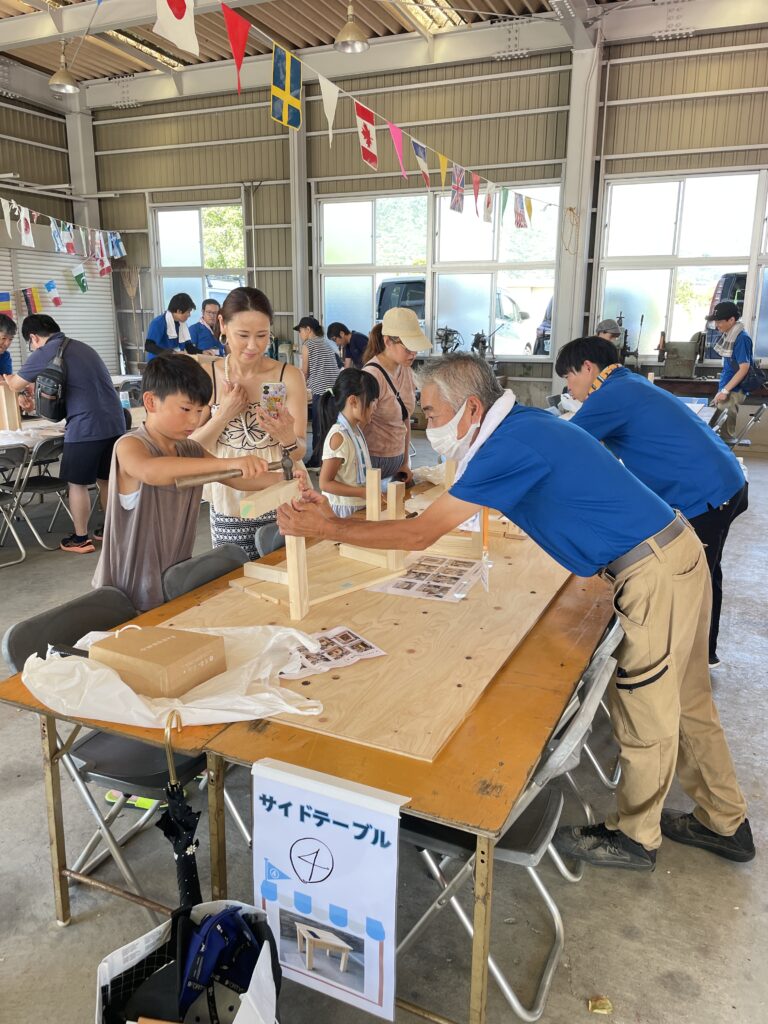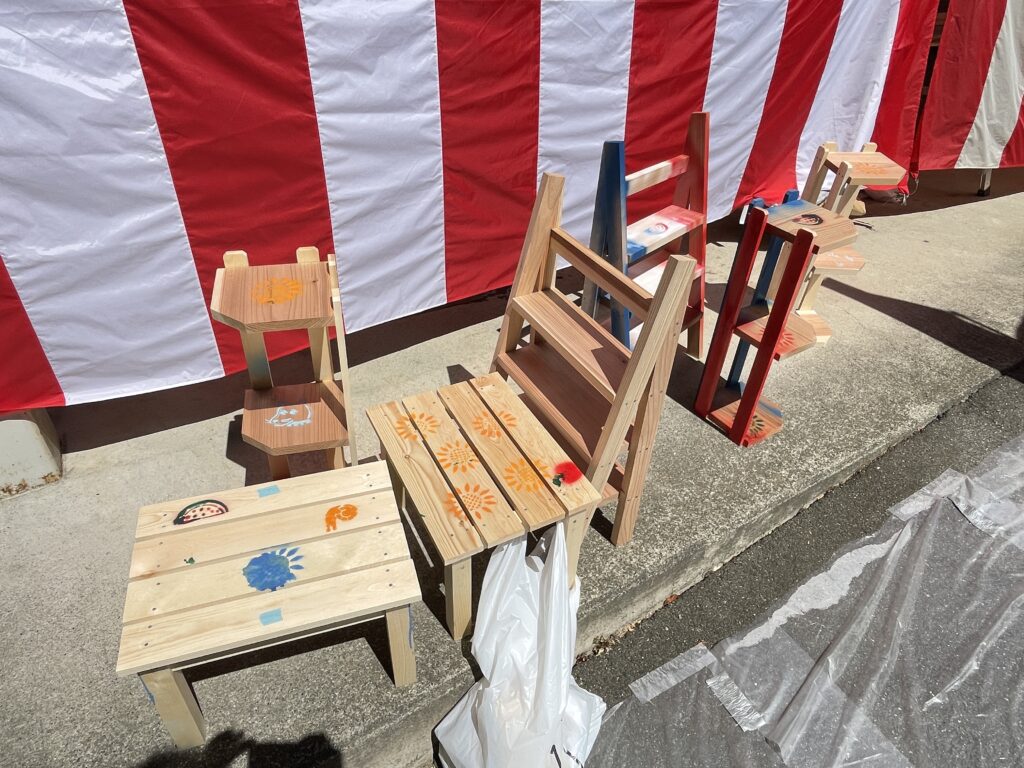 【①飾り棚・②コーナー棚&本棚・③こども用ベンチ・④サイドテーブル】をこの日までに、大工さん達が木材を加工したものをパートナー様とスタッフの指導のもと、‟作品づくりの楽しさ”を教室として体験していただきました🌳🌳🌳(お好みでポイントに塗装を楽しむ方もいました!)