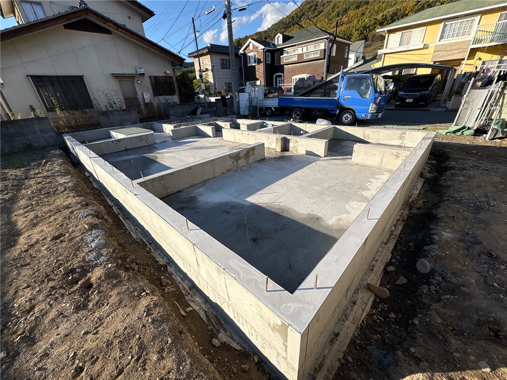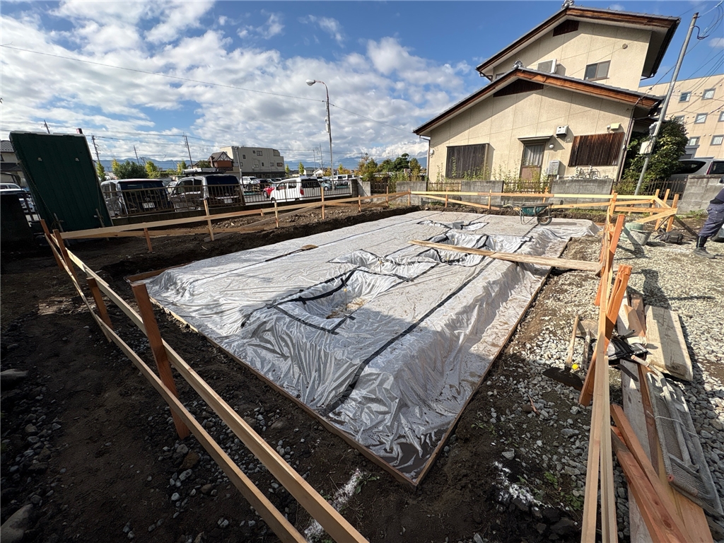 笛吹市石和町にて基礎工事スタートしました。