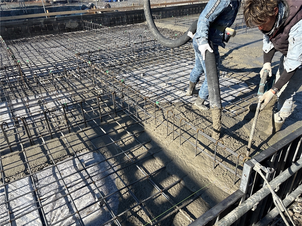 ↓ ポンプを使用して丁寧に、ベースコンクリートの流し込まれていきます。
