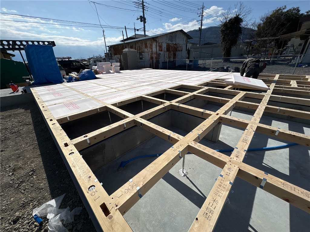 ↓ 先日、土台敷と断熱材の敷設をおこないました