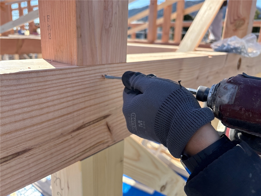 ↓ 建て方工事中の状況です。チームワークよくスムーズに進行してます。
