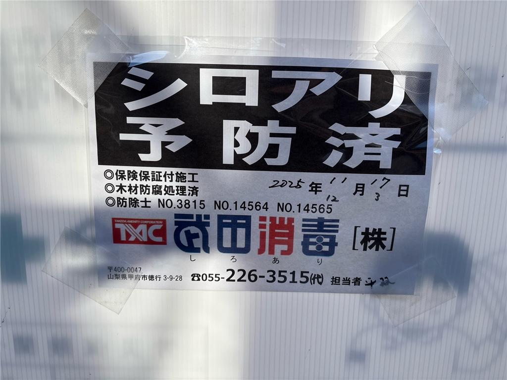 ↓下の方ではシロアリ消毒の散布が完了しました