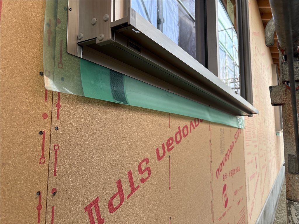 ↓漏水の起こりやすいサッシ下に、【ウェザータイト】という防水部材を取り付けることで